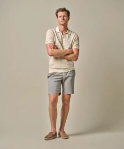 This short-sleeve polo is knitted in a pleasing summer crochet, open-textured look. Organic cotton blend.